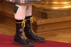Vuoden akatemiaprofessori Howard Jacobsin asuun kuului frakin yläosa, kiltti ja maihinnousukengät.