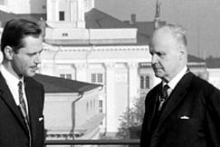 - Kärnvapenprov påverkar på inga villkor klimatet, svarar professor Erik Palmén uppe på Porthanias tak i Helsingfors.