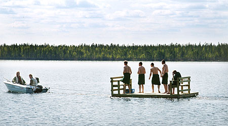 | Erkki Mansikkamäki (Tapio Kouki), Heimo Hiitola (Taisto Reimaluoto), Pentti Reunanen (Risto Aaltonen), Aulis Lehtola (Antti Aro), Kauko Hulkko (Ilja Peltola) sekä veneessä Hippi-Antero Reunanen (Johnny Dahlqvist) ja Pauli Valkia (Marko Reinola) | ||