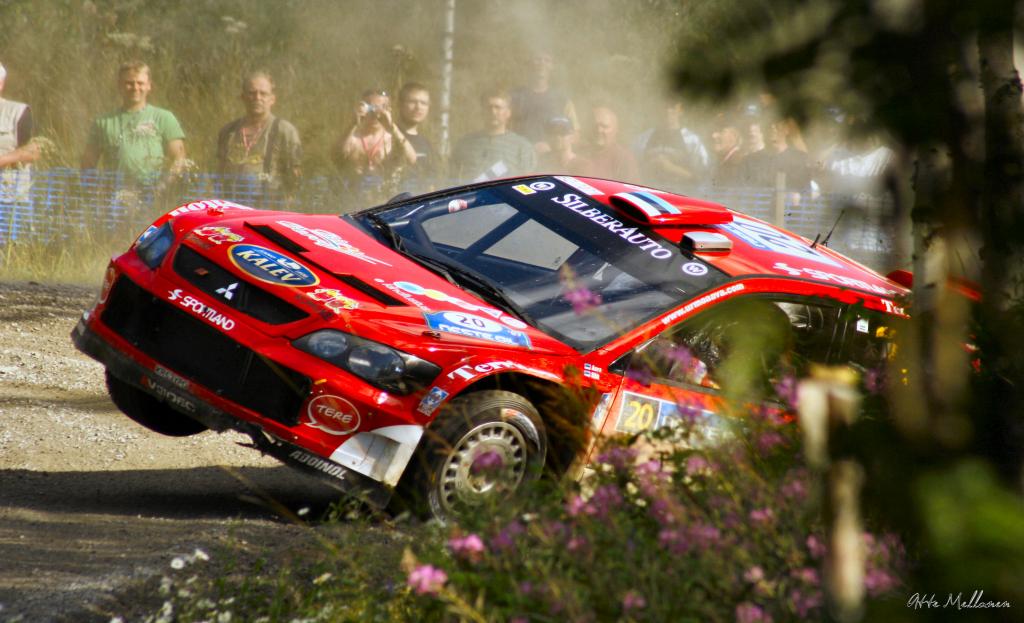 Kuva on otettu Himoksen erikoiskokeelta. Aluksi alas viettävä rinne ja heti sen jälkeen paha ysikymppinen risteys teki temppunsa myös virolaiselle Urmo Aavalle (kuvassa). Urmo pystyi kuitenki nousemaan ylös ojan penkalta ja jatkamaan kisaansa, aikaa tosin ojien kyntämisessä tuhlaantui reilusti!