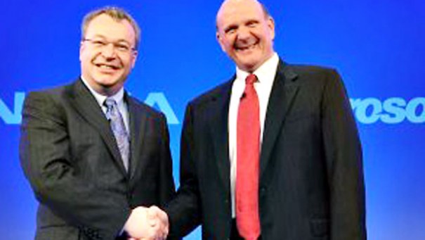 Nokian toimitusjohtaja Stephen Elop ja Microsoftin toimitusjohtaja Steve Ballmer. Kuva: Daniel Deme / EPA