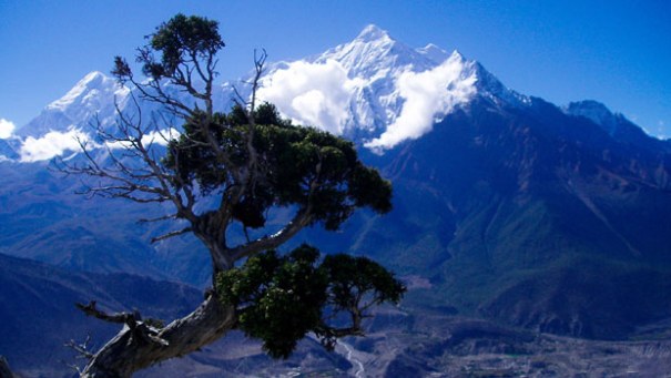 Lumihuippuisten vuorten rinteillä viljellään ja ihmiset harjoittavat siellä ikiaikaisia riittejään.