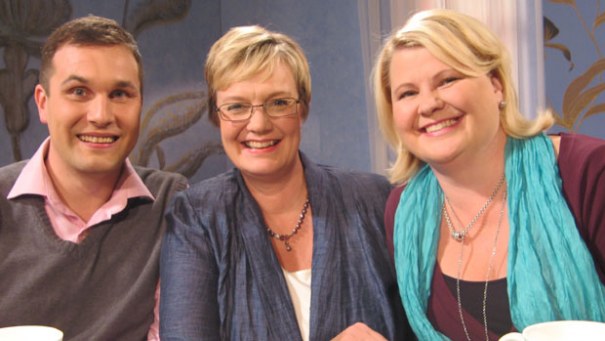 Jaana Kvist (vas.) ja Aira Kasanko ovat kohdanneet ennakkoluuloja kehitysvammaisen lapsen äitinä. Keskellä juontaja Kimmo Saares.