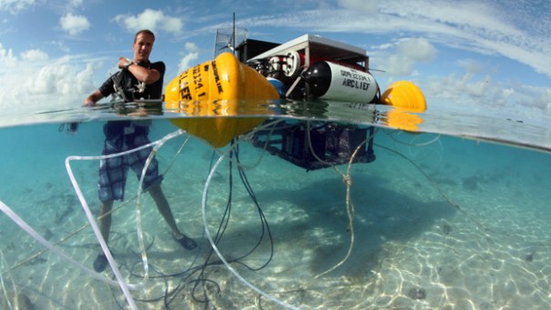 Kuvassa vedenalainen laboratorio, jonka avulla tutkitaan meriveden happamuusarvoja koralliriutoilla.