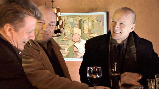Rauno (Timo Torikka), Matti (Pertti Sveholm) ja Erkki (Kari Heiskanen) viettävät jouluaattoa baarissa.
