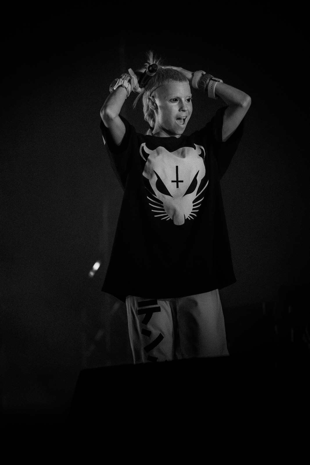 DJ Vuilgeboost saapuu ensimmäisenä lavalle. Yleisö taputtaa ja huutaa villisti. Hetkeä myöhemmin Lumia Blue Tentin estradille saapuvat myös bändin keulakuvat Ninja ja Yo-Landi. He ovat pukeutuneet lähes identtisiin esiintymisasuihin ja molemmilla on huput päässä.