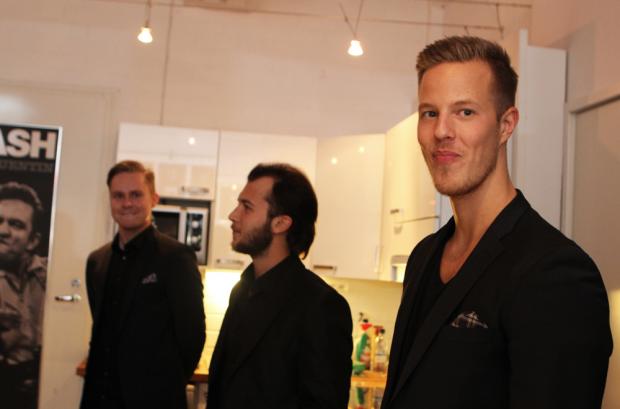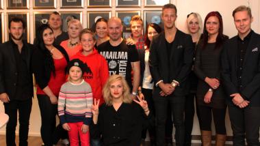 Virallisten yhteiskuvien ja lukuisien selfieiden jälkeen on aika lähteä. Vieraat hymyilevät pukiessaan takkejaan. Sini kiittää yhtyettä vielä kerran.